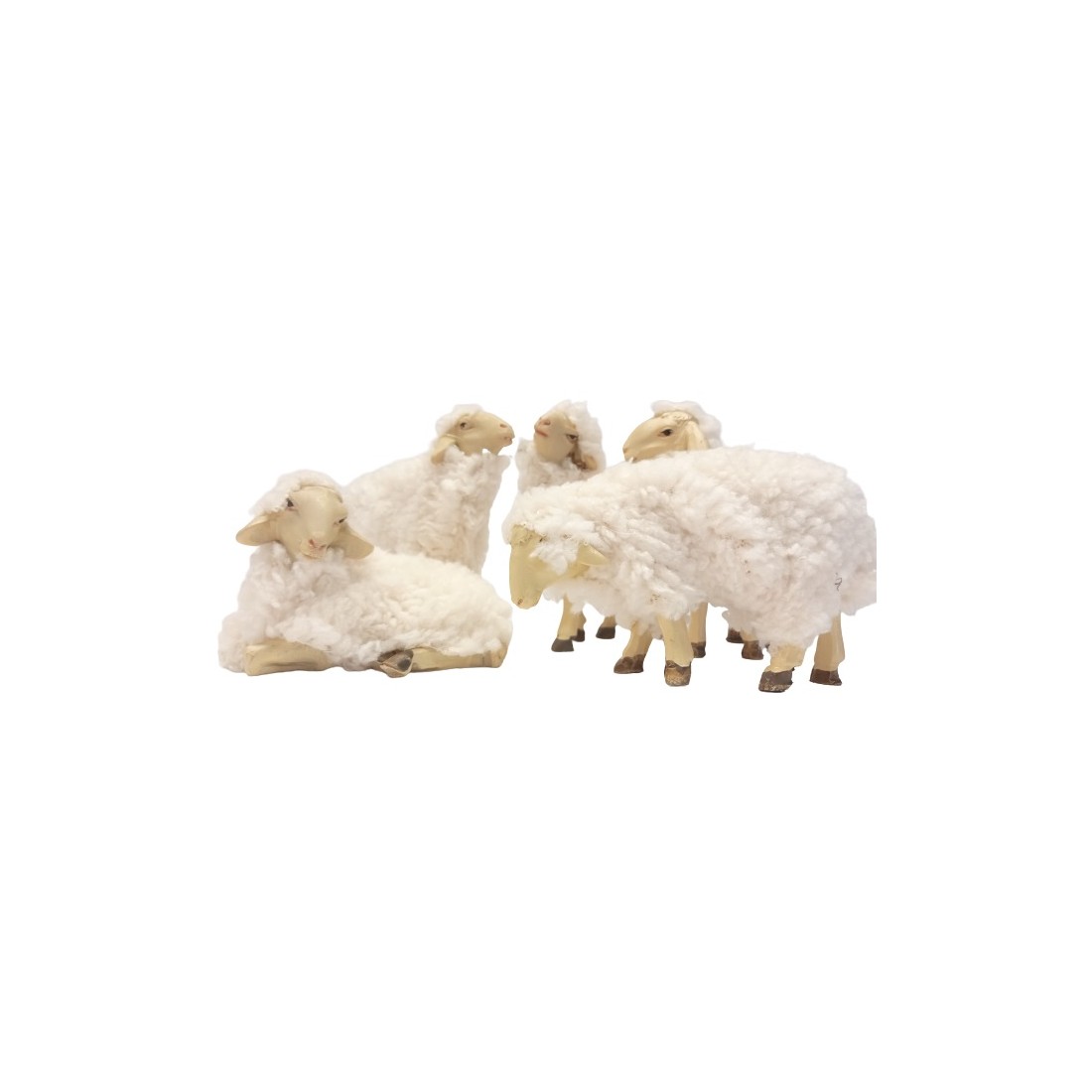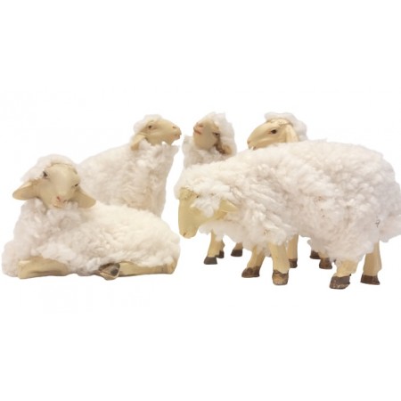 Pecora con Lana VERA set 5 pz H 7,5 cm Resina