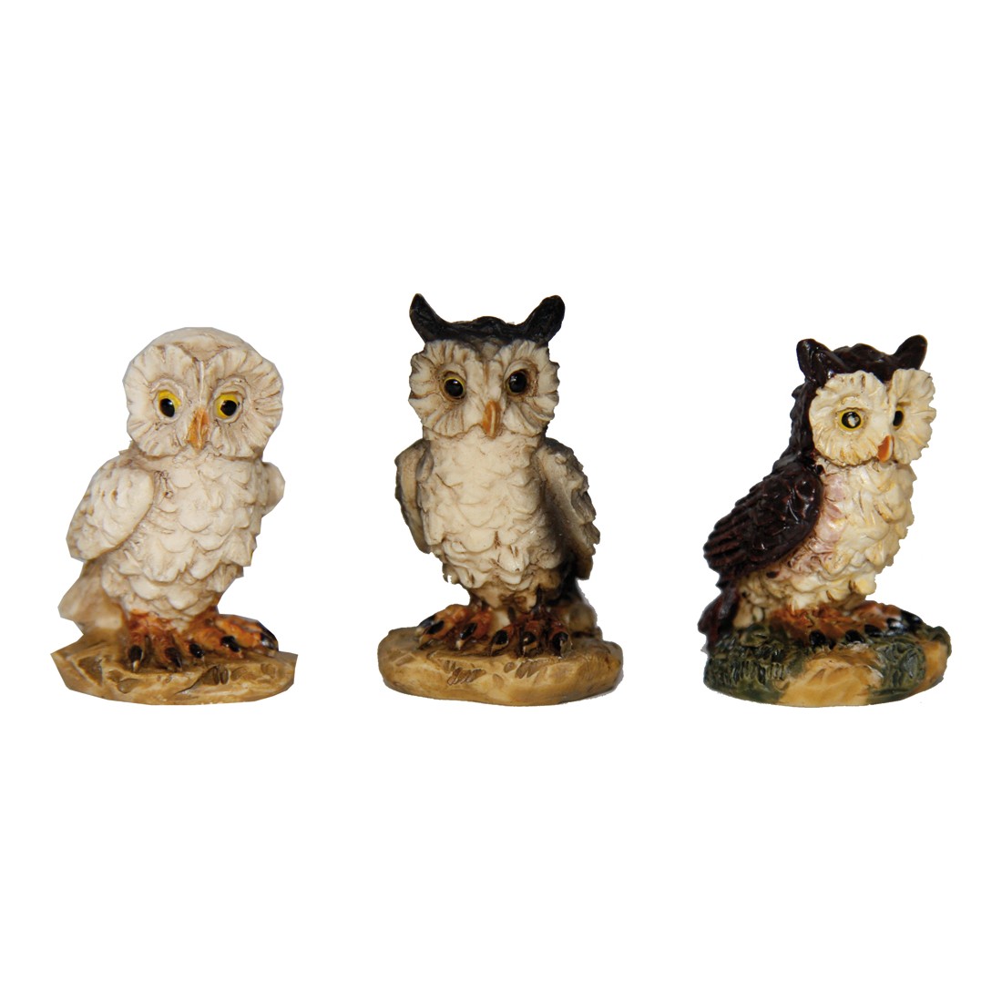 Gufi set da tre H 2,8 cm Resina
