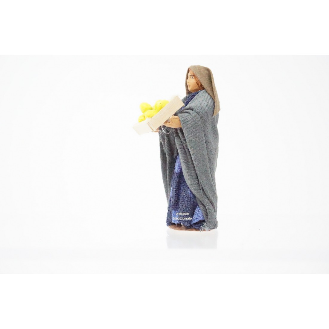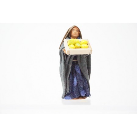 Donna con cassetta di limoni cm 7 in terracotta e tessuto
