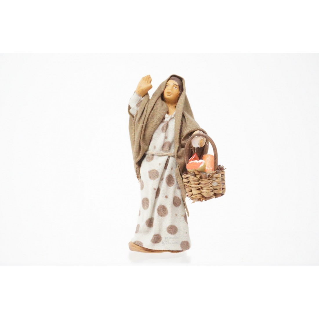 donna con cesto di salumi cm 7 terracotta e tessuto