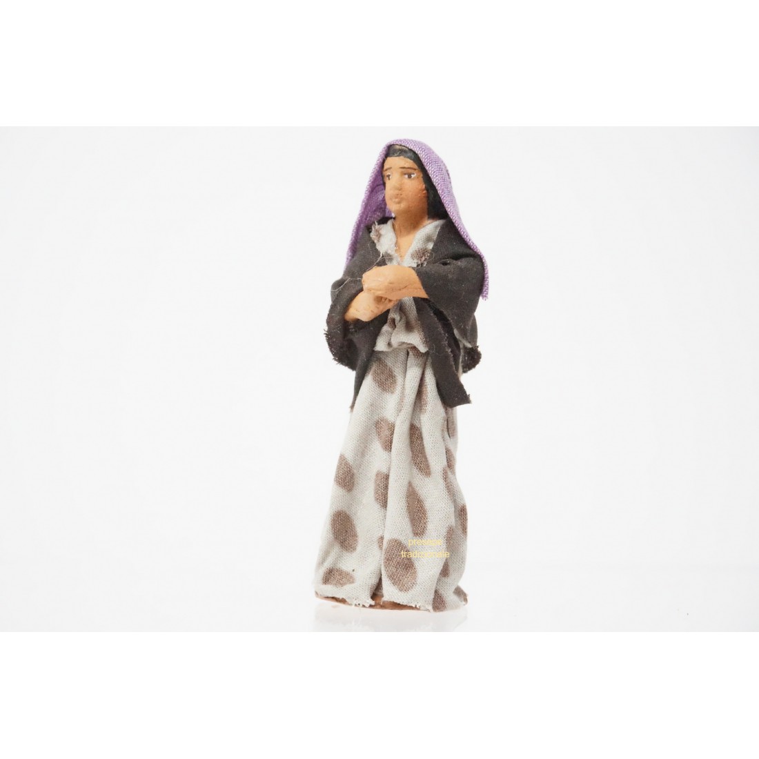La statuina è in stoffa modellata, con ogni particolare curato a mano nei minimi dettagli. Le espressioni del volto sono realistiche.