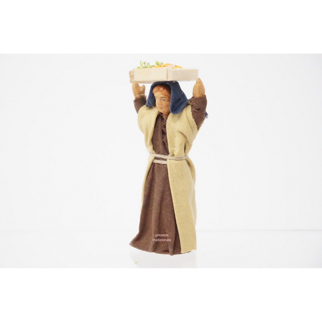 Donna con cassetta di carote cm 7 terracotta e tessuto
