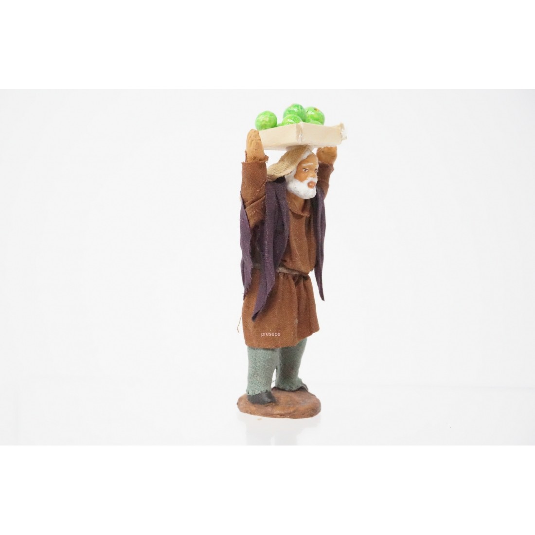 Uomo con cassetta di mele cm 7 terracotta e tessuto