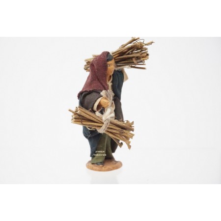 Uomo con fascine di legna cm 7 terracotta e tessuto