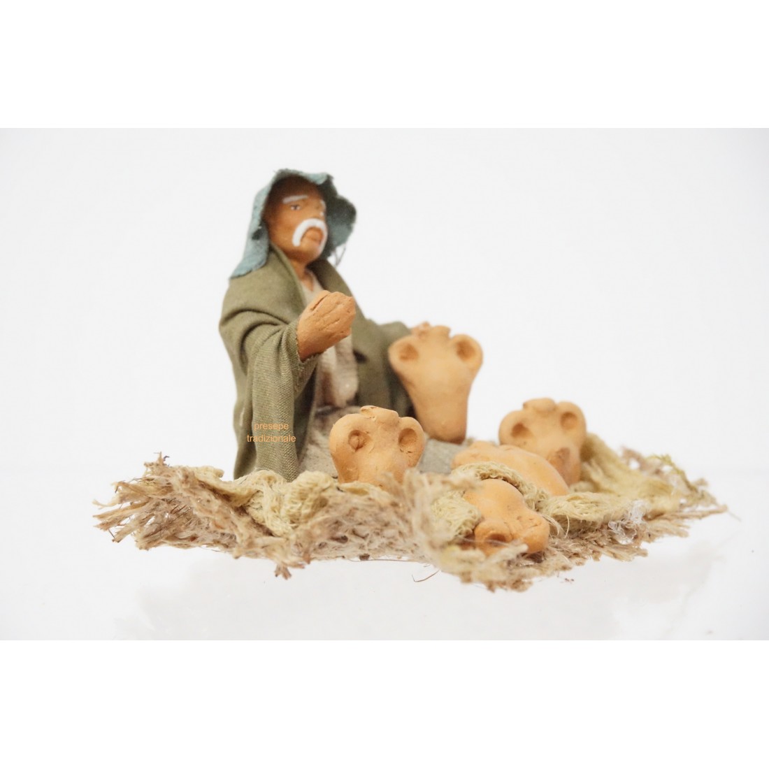 Uomo seduto con anfore cm 7 in terracotta e tessuto