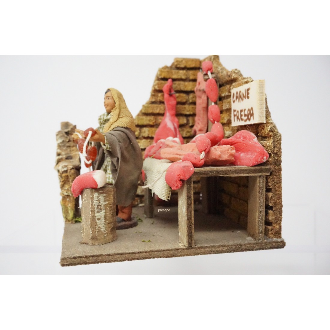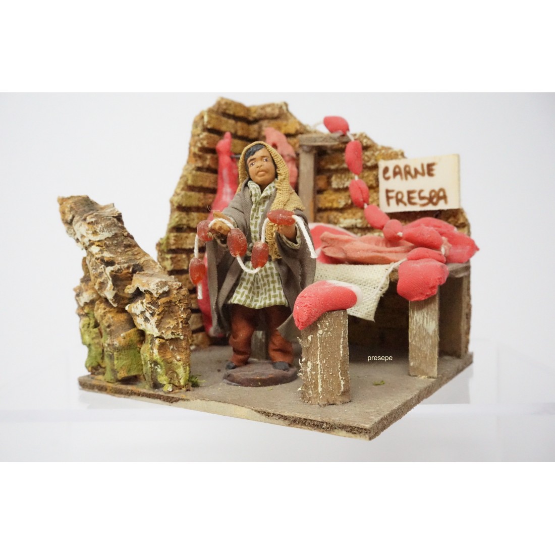 Uomo venditore carne cm 7 in terracotta e tessuto