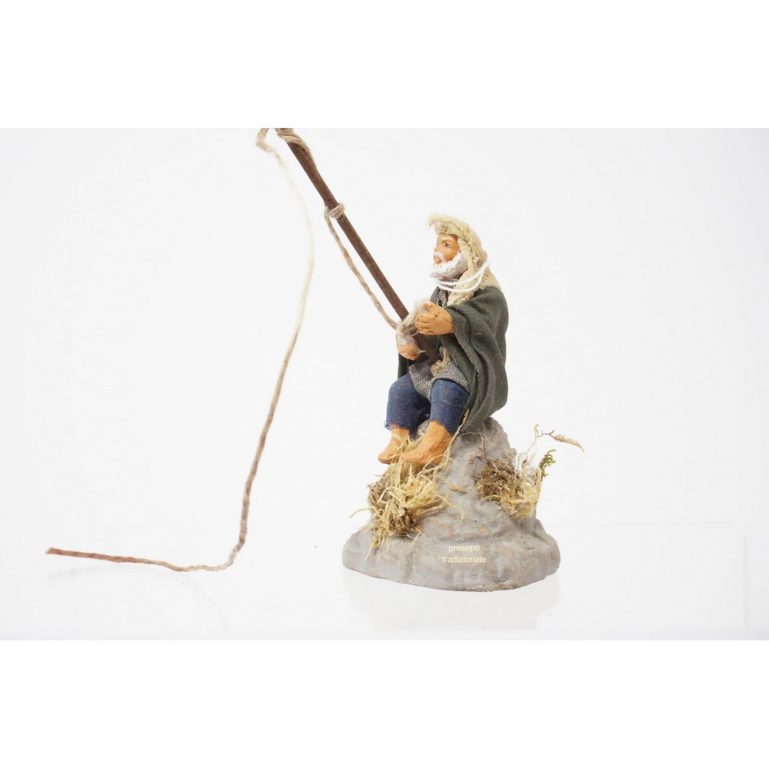 Pescatore sopra lo scoglio cm 7 terracotta e tessuto