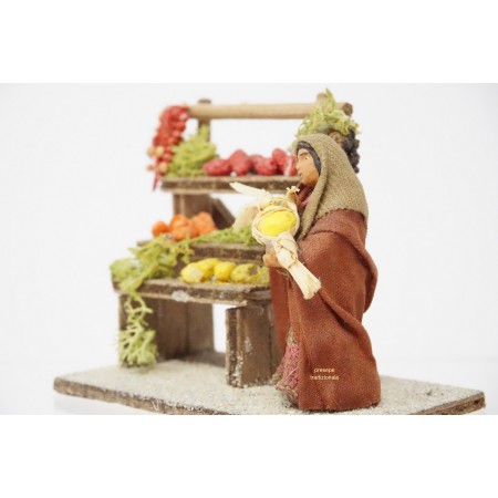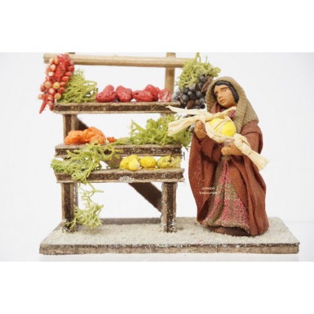 Donna venditrice frutta cm 4 in terracotta e tessuto