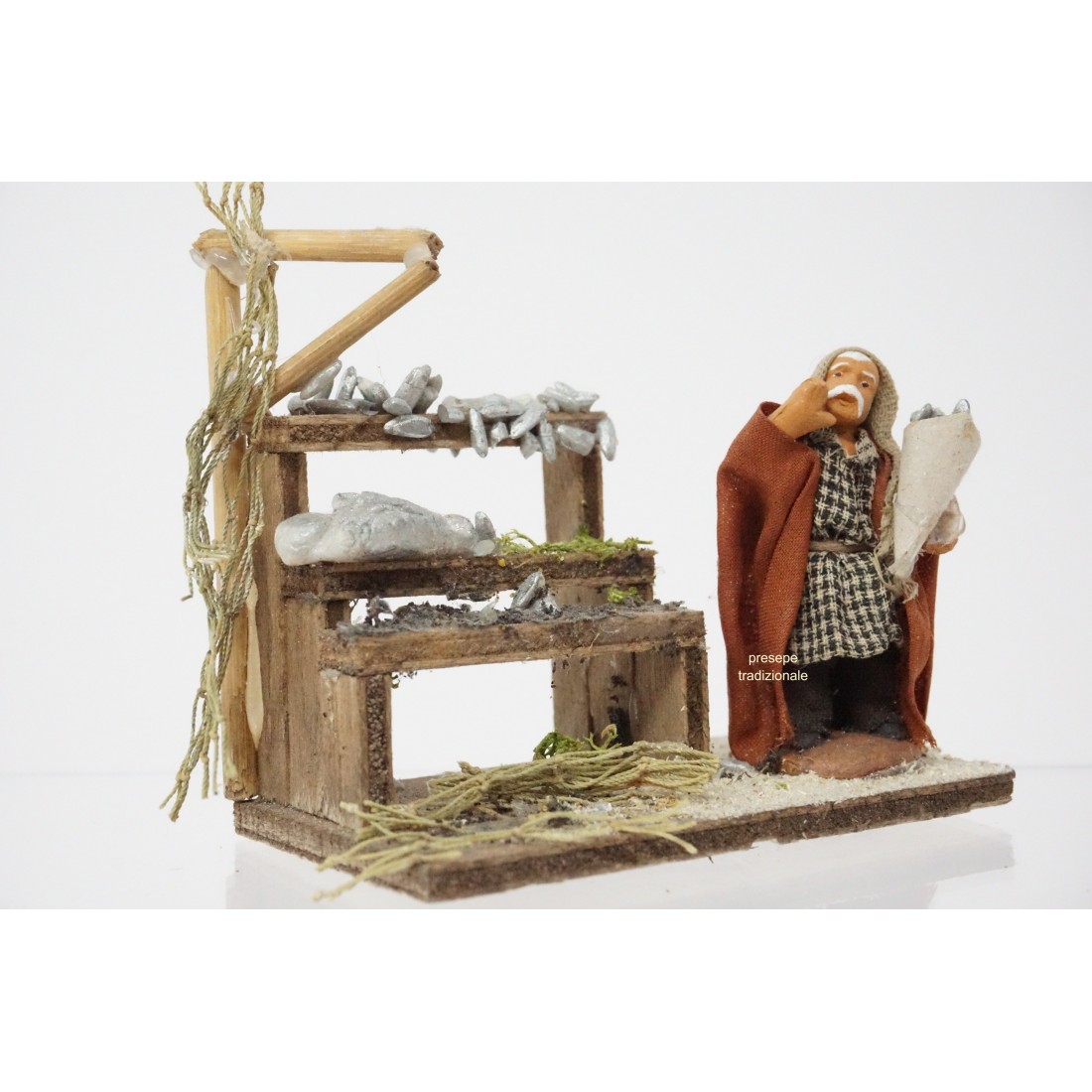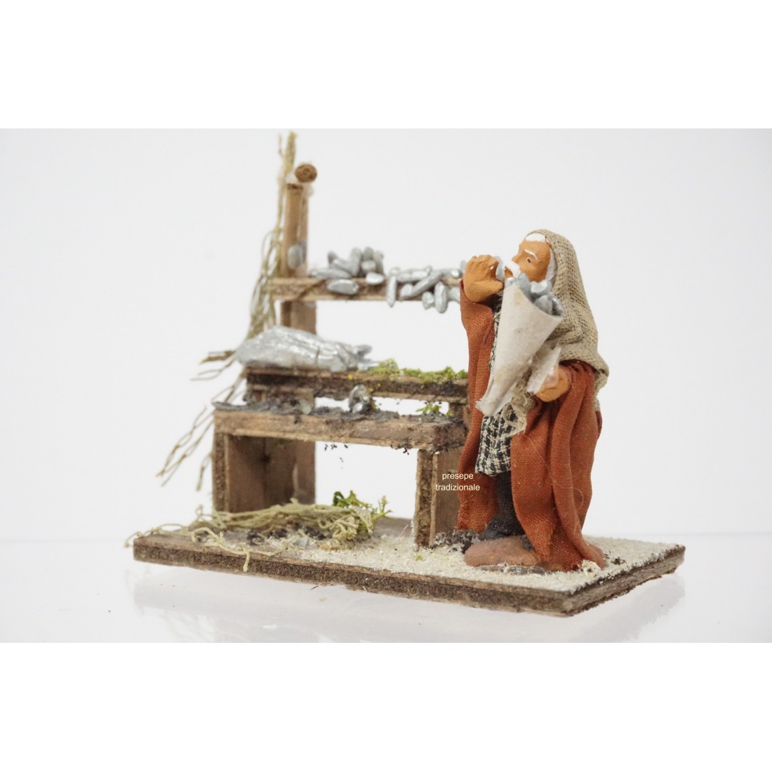Uomo venditore di pesce cm 4 terracotta e tessuto