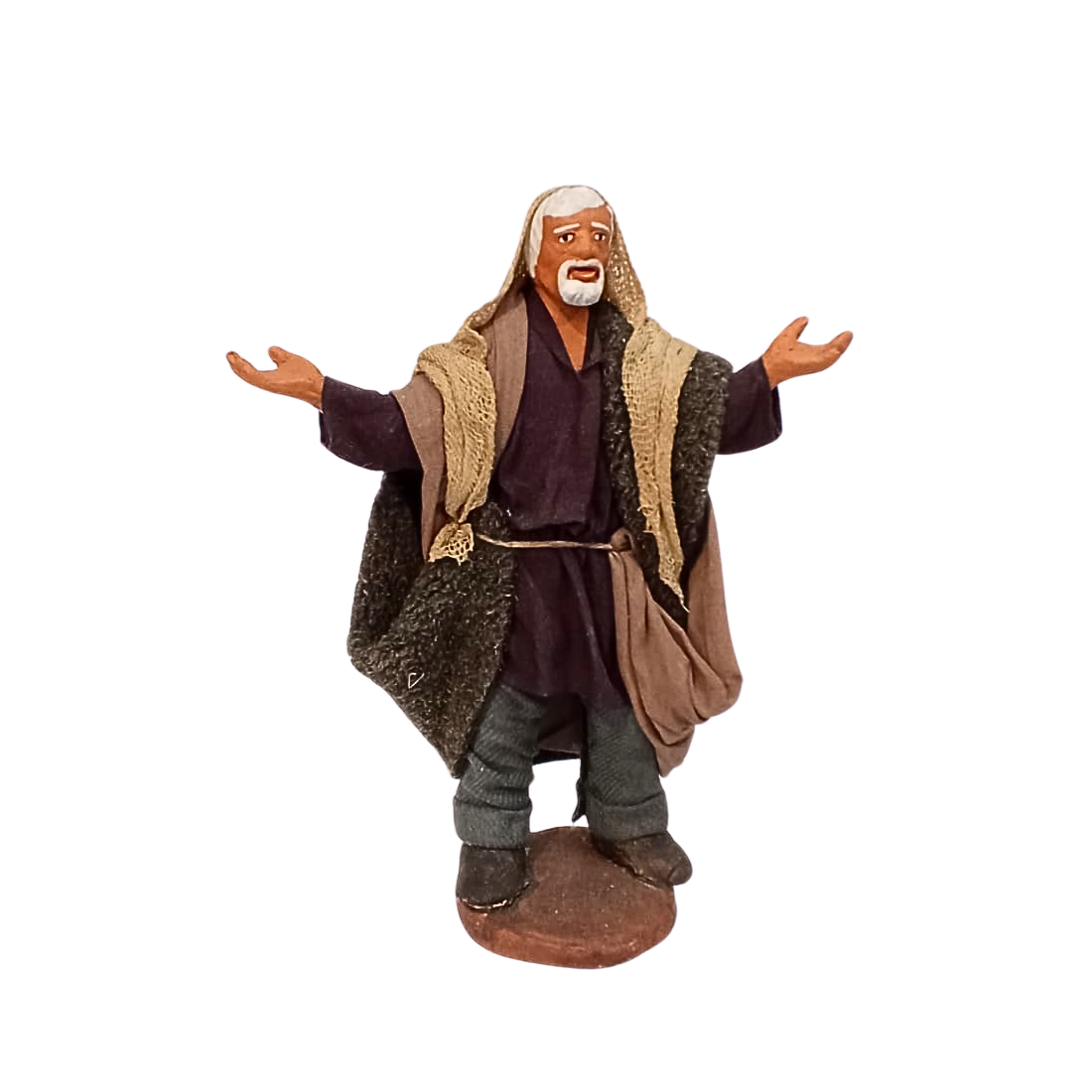La statuina è in stoffa modellata, con ogni particolare curato a mano nei minimi dettagli. Le espressioni del volto sono realistiche.