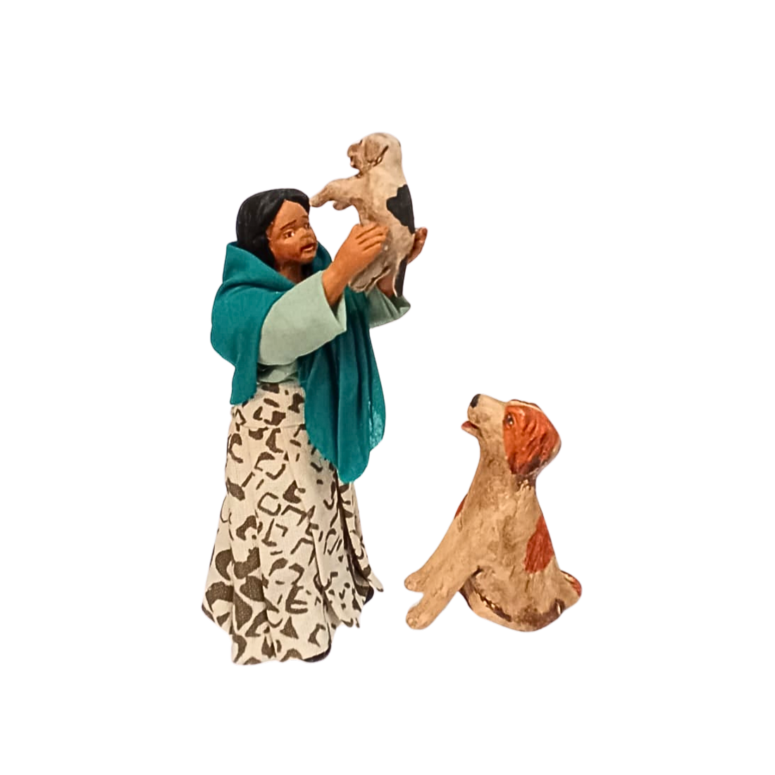 Bambina con cani cm 13 terracotta e tessuto