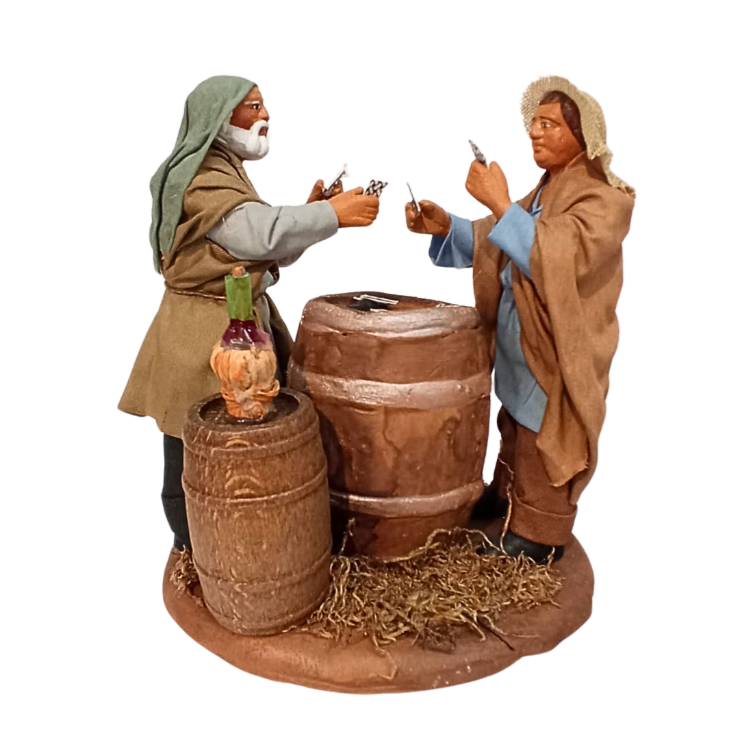 Personaggi in terracotta siciliana vestiti in tessuto da artigiani napoletani.