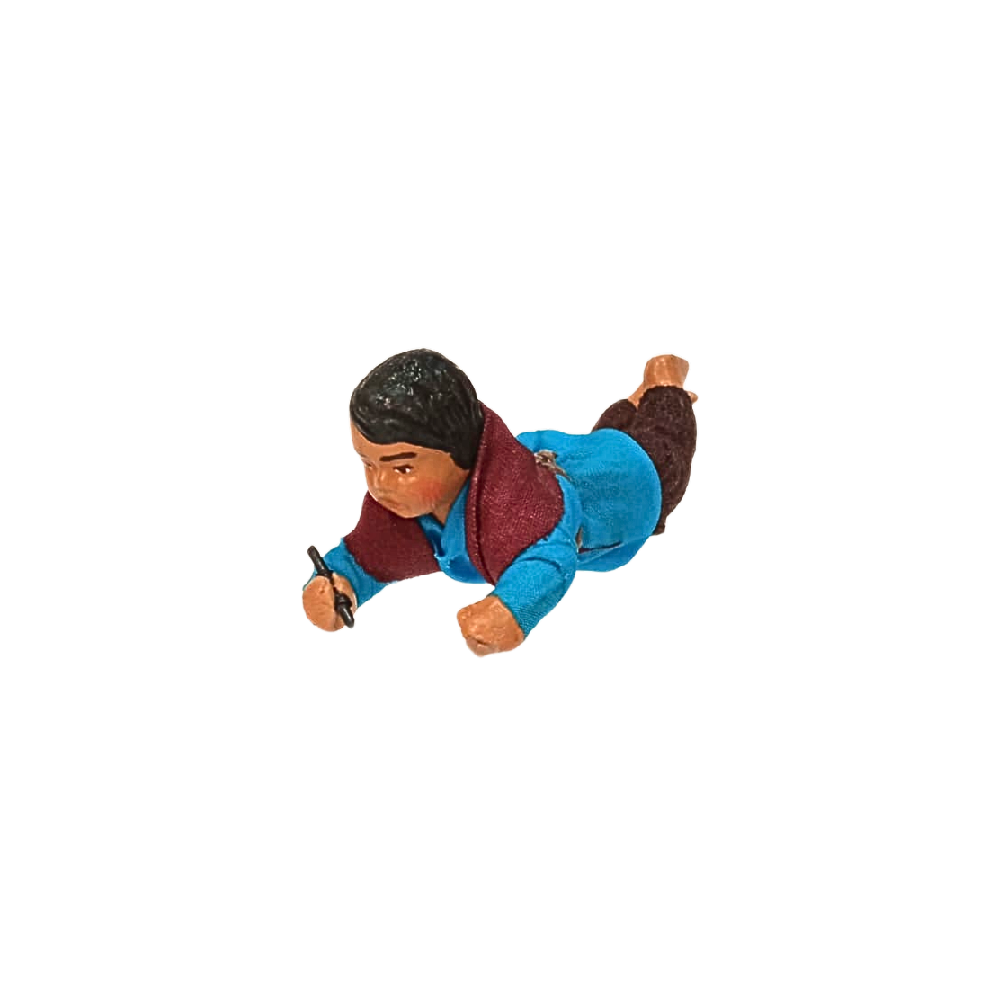 Bambino sdraiato cm 13 terracotta e tessuto