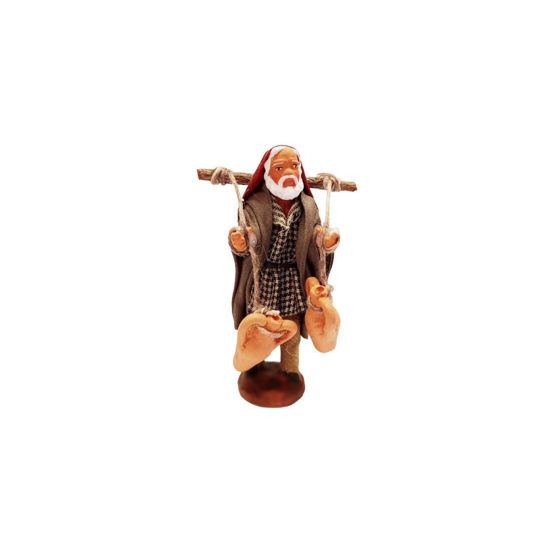 Uomo con anfore sulle spalle cm 7 in terracotta e tessuto