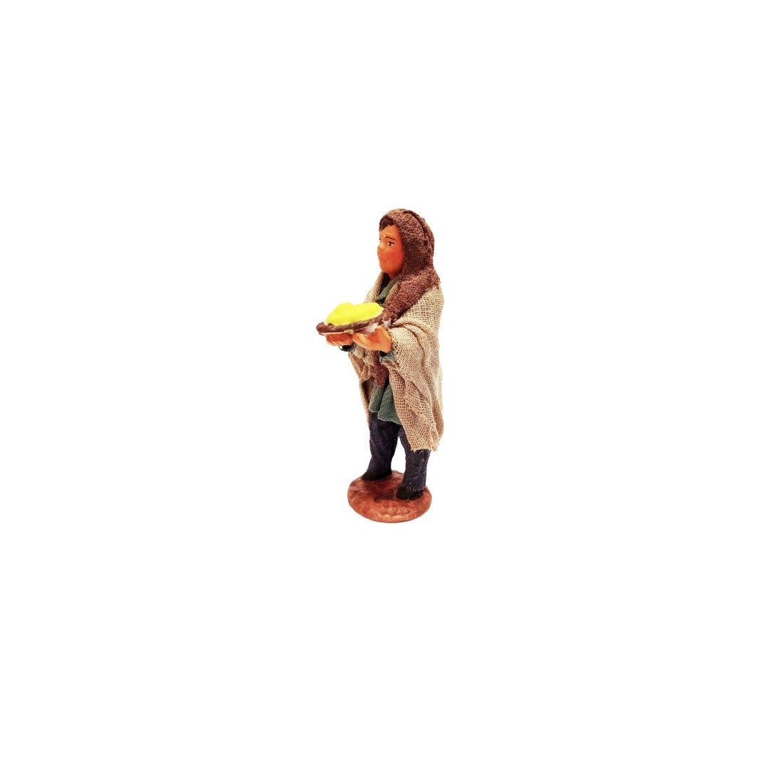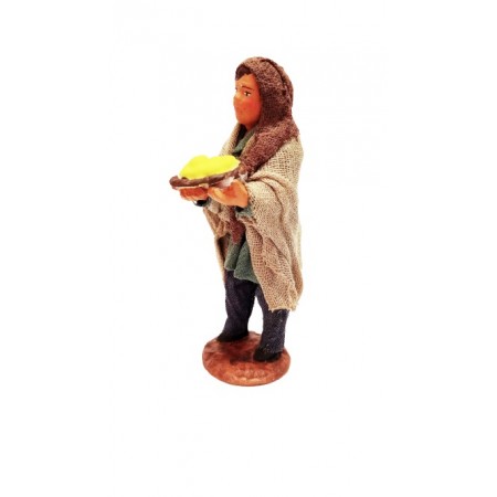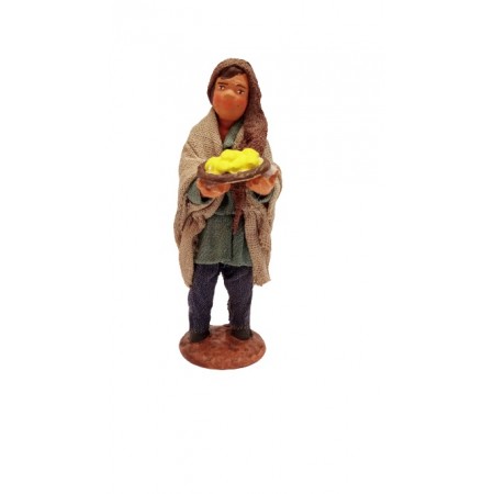 Uomo con piatto di limoni cm 7 in terracotta e tessuto -