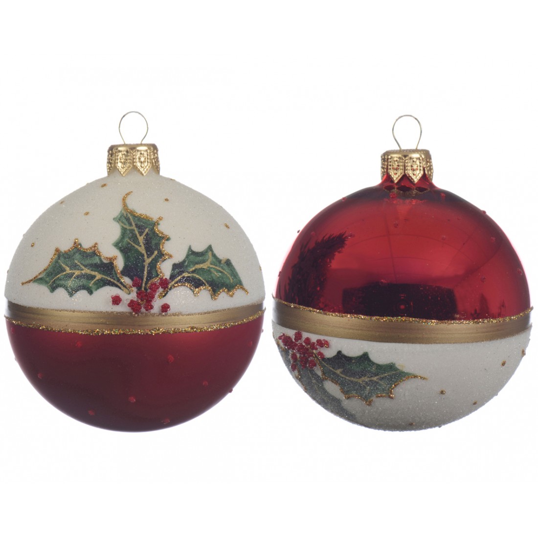 Coppia di sfere vetro rosso e bianco con disegno diam.8