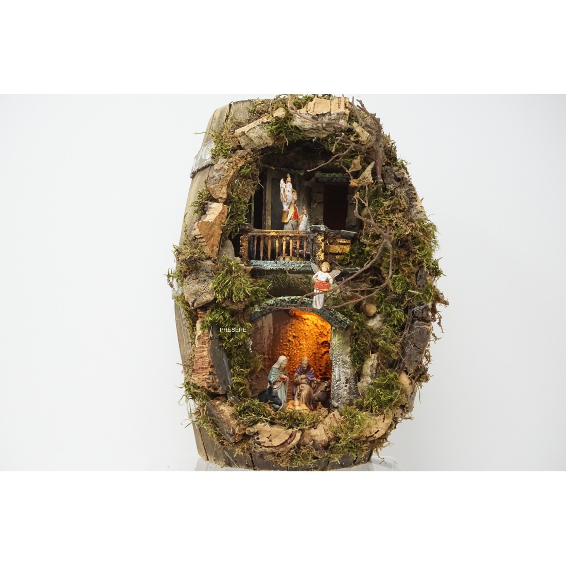 Presepe napoletano Botte piccola in legno e sughero 12 x19 h 27 cm completo di nativita'