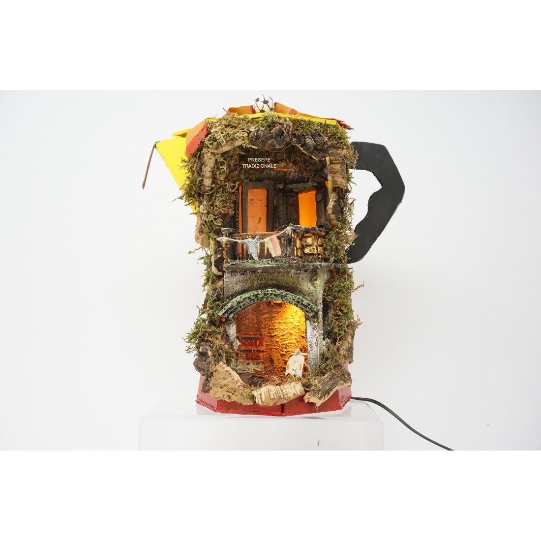 Presepe napoletano Moka giallorossa in legno e sughero 13 x 13 h 30 cm'