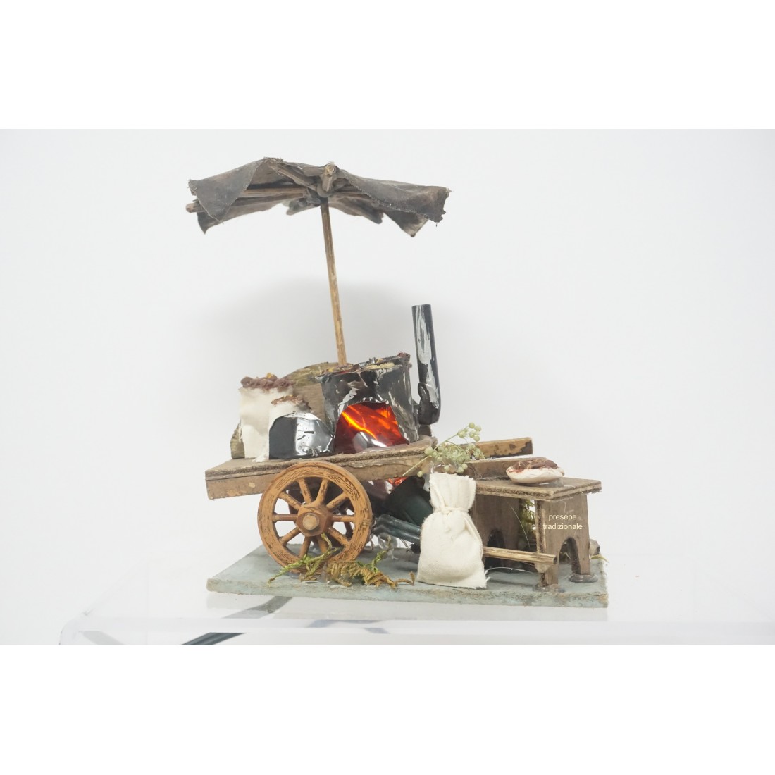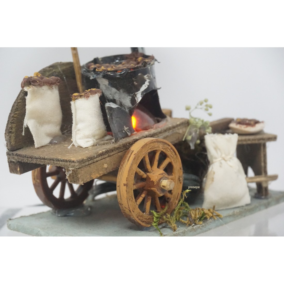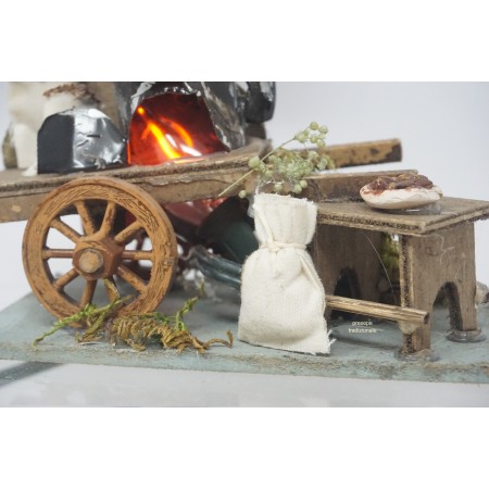 Carretto castagnaio effetto fuoco presepe napoletano in legno
