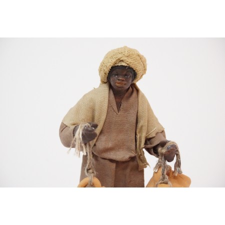 Pastore moro con anfore cm 10 in terracotta e tessuto