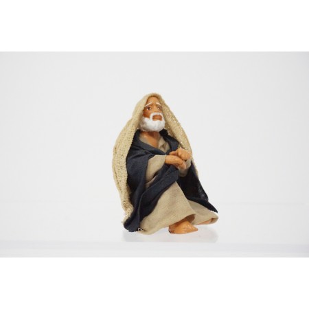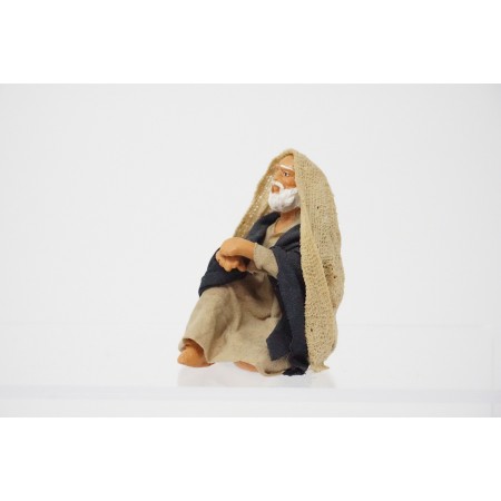 Pastore seduto cm 10 in terracotta e tessuto