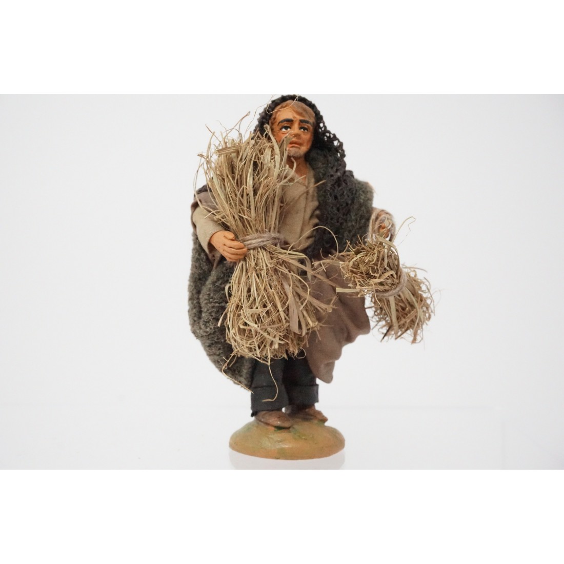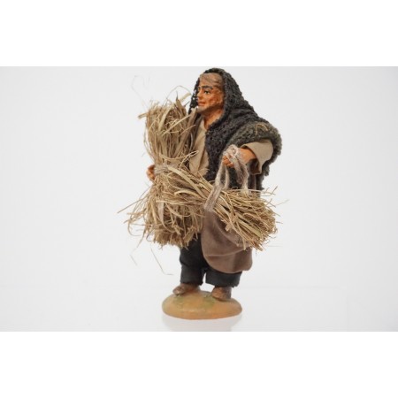Pastore con fascine di paglia cm 10 terracotta e tessuto