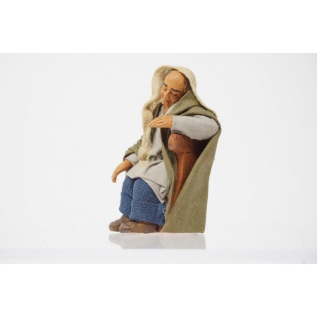 Uomo che dorme sulla sedia cm 10 in terracotta e tessuto