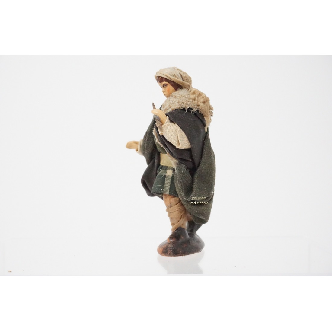 La statuina è in stoffa modellata, con ogni particolare curato a mano nei minimi dettagli. Le espressioni del volto sono realistiche.