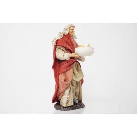 Donna con piatto di formaggi cm 13 terracotta e tessuto