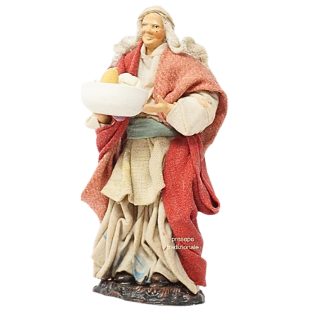 Donna con piatto di formaggi cm 13 in terracotta e tessuto