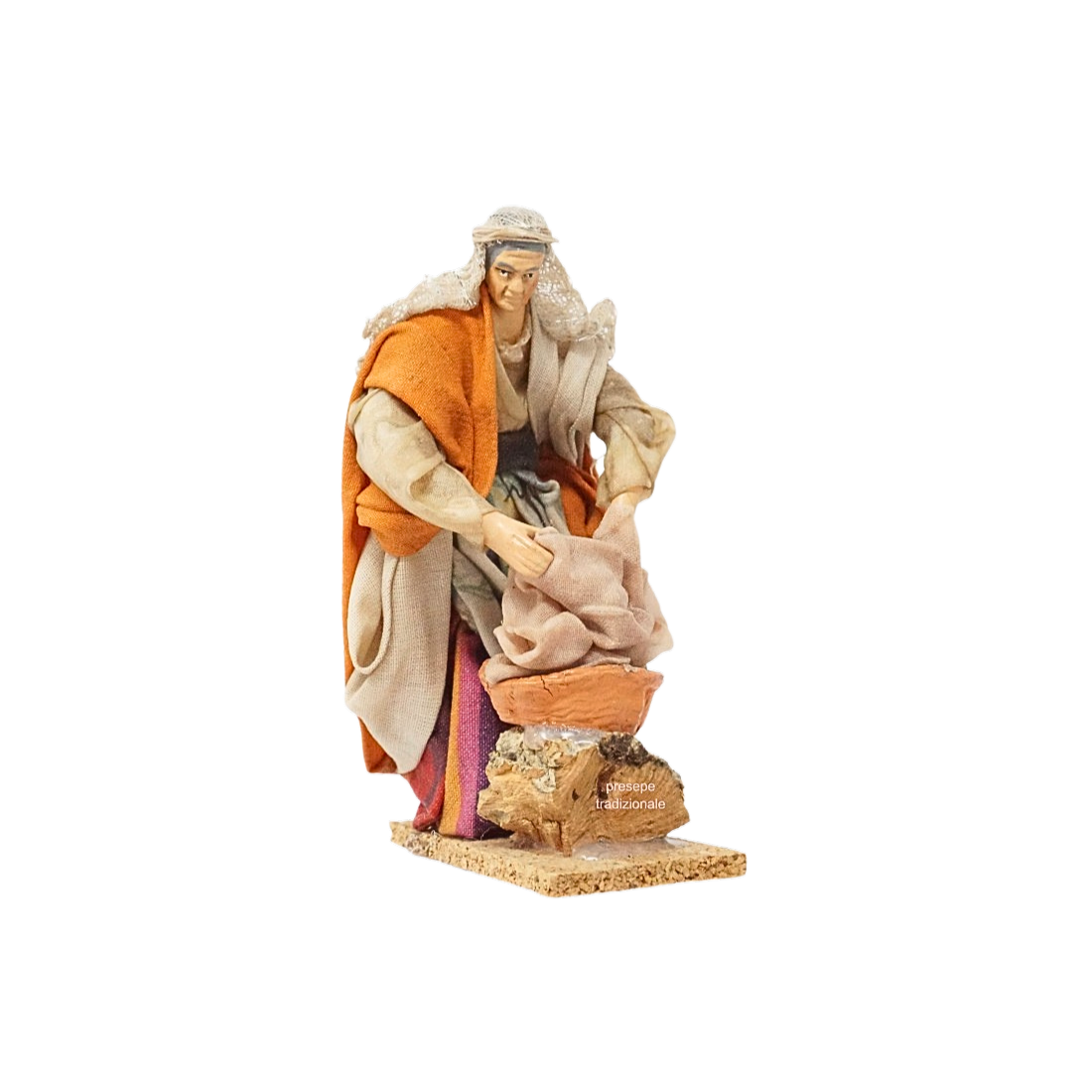 La statuina è in stoffa modellata, con ogni particolare curato a mano nei minimi dettagli. Le espressioni del volto sono realistiche.