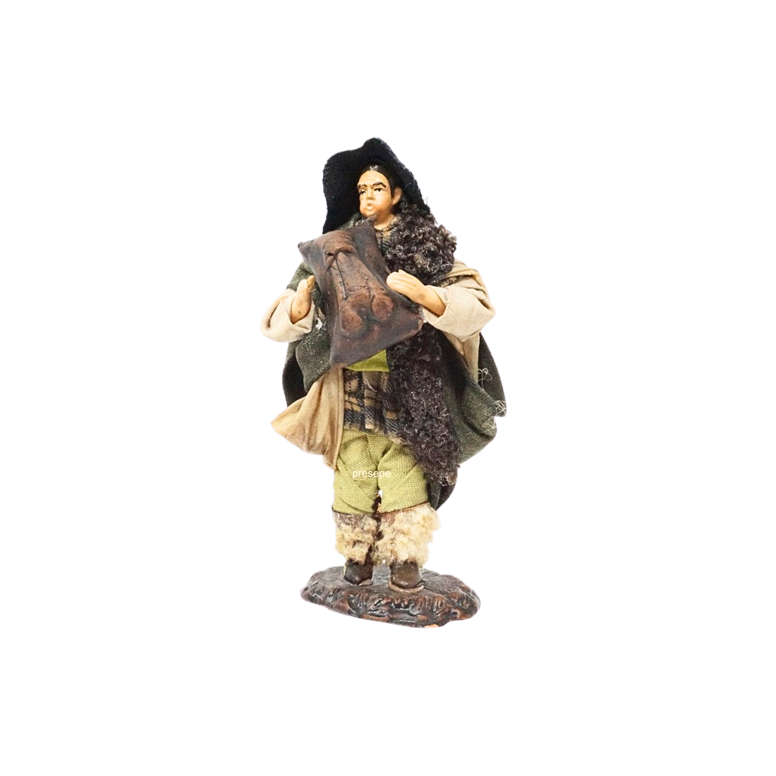 La statuina è in stoffa modellata, con ogni particolare curato a mano nei minimi dettagli. Le espressioni del volto sono realistiche.