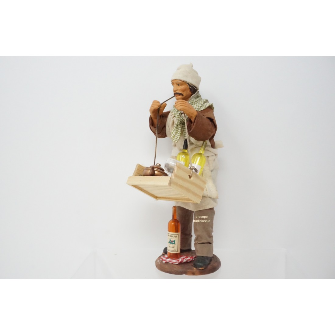 Uomo con cassetta di bottiglie cm 15 terracotta e tessuto