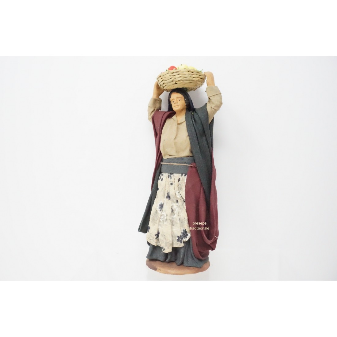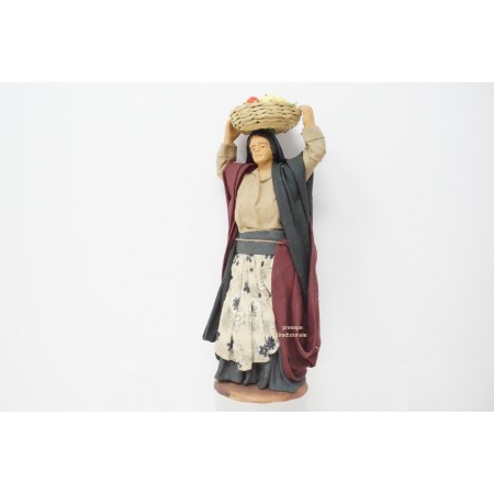 Donna con cesto di frutta cm 15 terracotta e tessuto