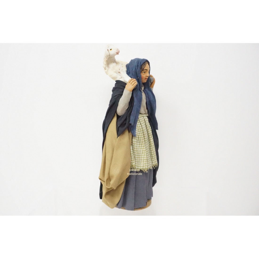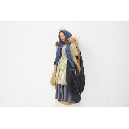 Donna con pecora cm 14 terracotta e tessuto