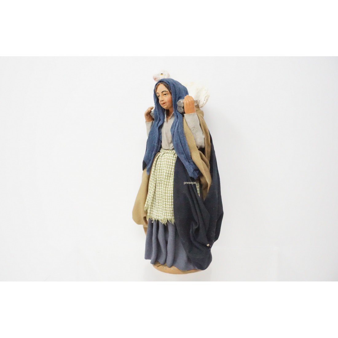 Donna con pecoracm 14 in terracotta e tessuto