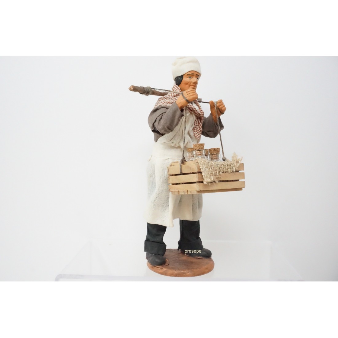Uomo con cassetta di bottiglie cm 15 terracotta e tessuto