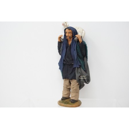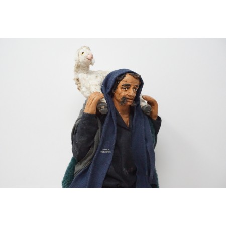 Uomo con pecora con pecora cm 14 terracotta e tessuto
