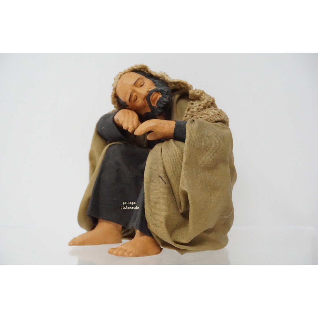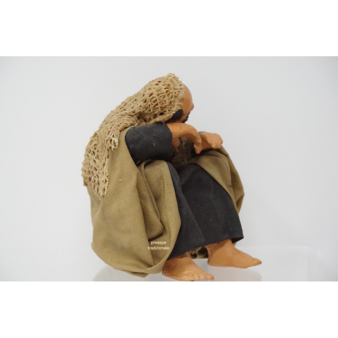 Uomo seduto che riposa cm 15 in terracotta e tessuto