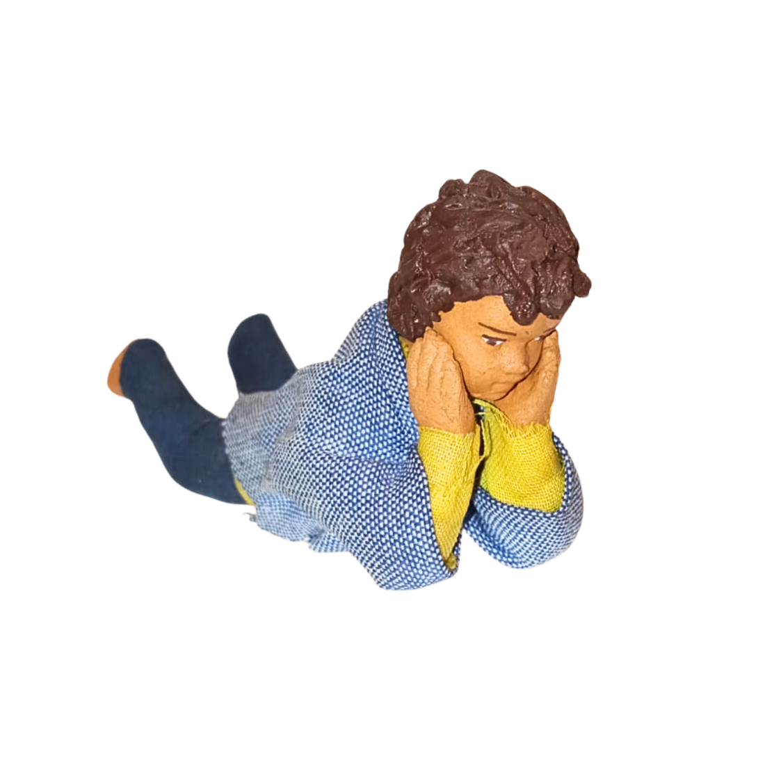 La statuina è in stoffa modellata, con ogni particolare curato a mano nei minimi dettagli. Le espressioni del volto sono realistiche.