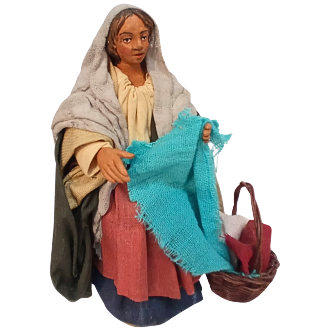 La statuina è in stoffa modellata, con ogni particolare curato a mano nei minimi dettagli. Le espressioni del volto sono realistiche.