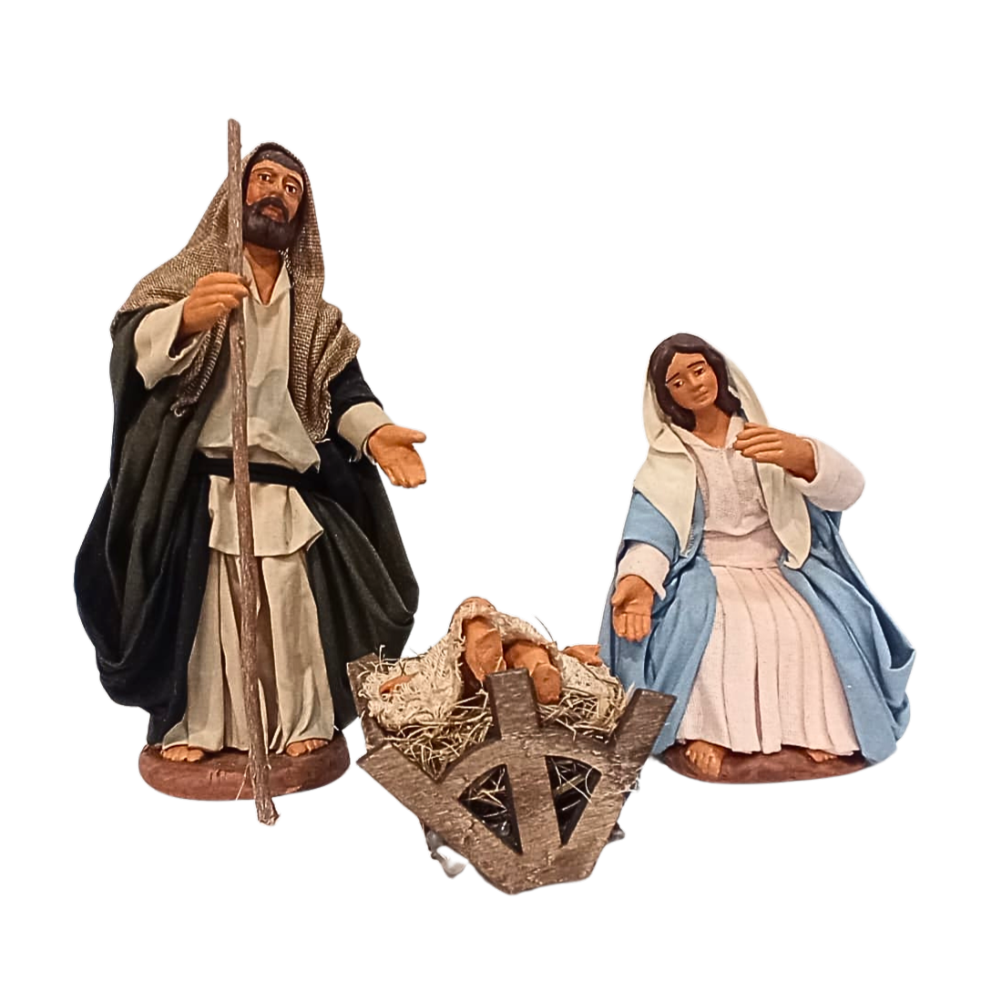 Nativita' 3 pz. cm 15 terracotta e tessuto