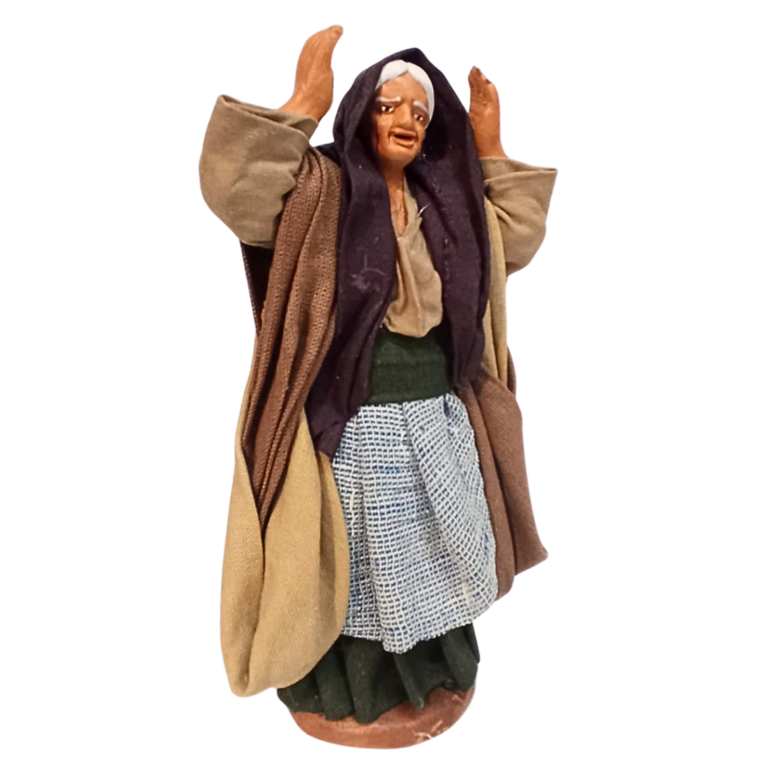 La statuina è in stoffa modellata, con ogni particolare curato a mano nei minimi dettagli. Le espressioni del volto sono realistiche.