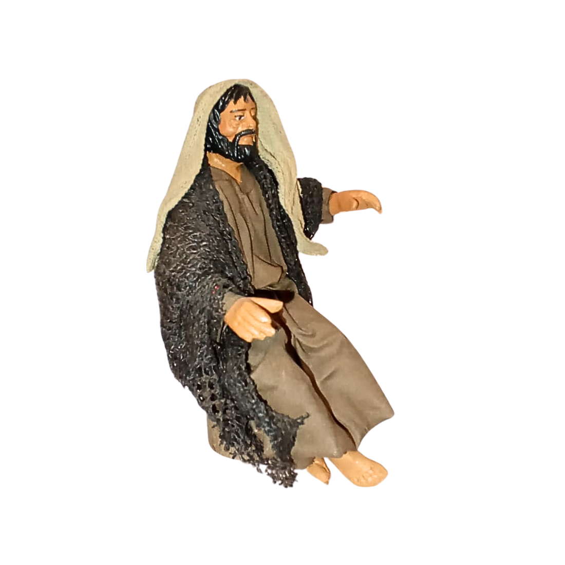 La statuina è in stoffa modellata, con ogni particolare curato a mano nei minimi dettagli. Le espressioni del volto sono realistiche.