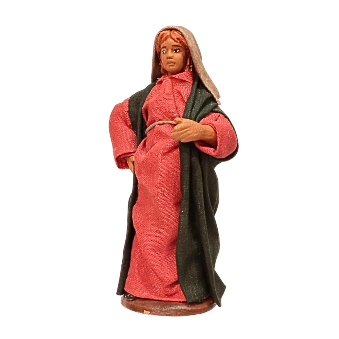 La statuina è in stoffa modellata, con ogni particolare curato a mano nei minimi dettagli. Le espressioni del volto sono realistiche.