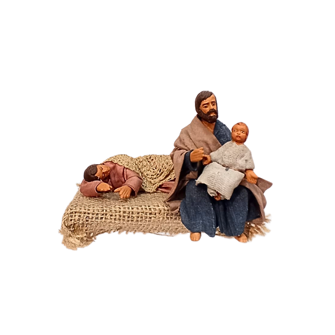 Personaggi in terracotta siciliana vestiti in tessuto da artigiani napoletani.