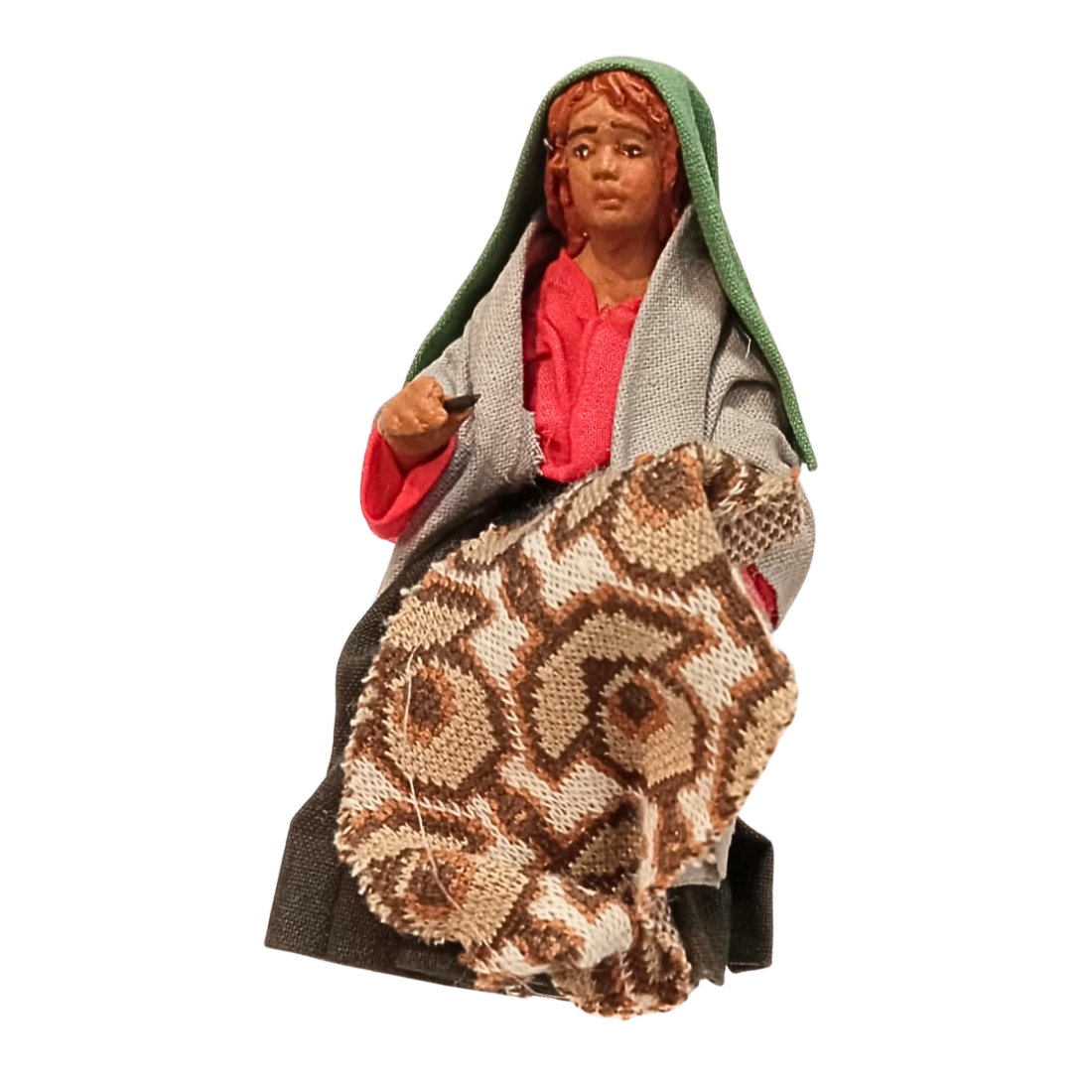 La statuina è in stoffa modellata, con ogni particolare curato a mano nei minimi dettagli. Le espressioni del volto sono realistiche.