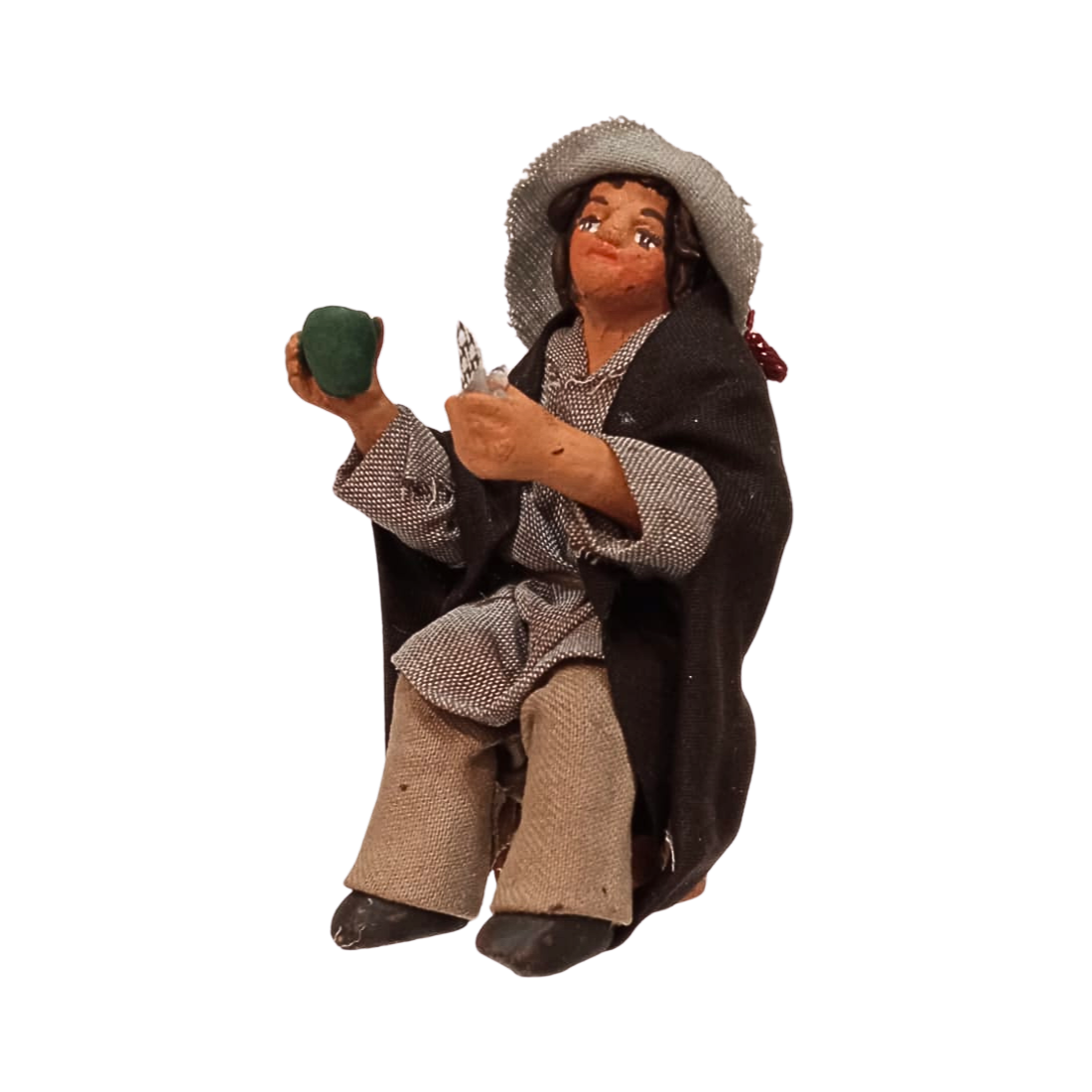 La statuina è in stoffa modellata, con ogni particolare curato a mano nei minimi dettagli. Le espressioni del volto sono realistiche.