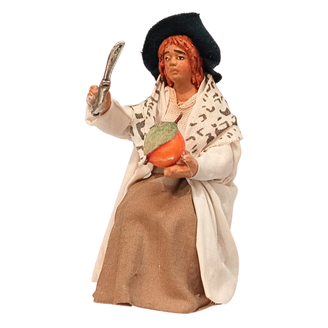 La statuina è in stoffa modellata, con ogni particolare curato a mano nei minimi dettagli. Le espressioni del volto sono realistiche.