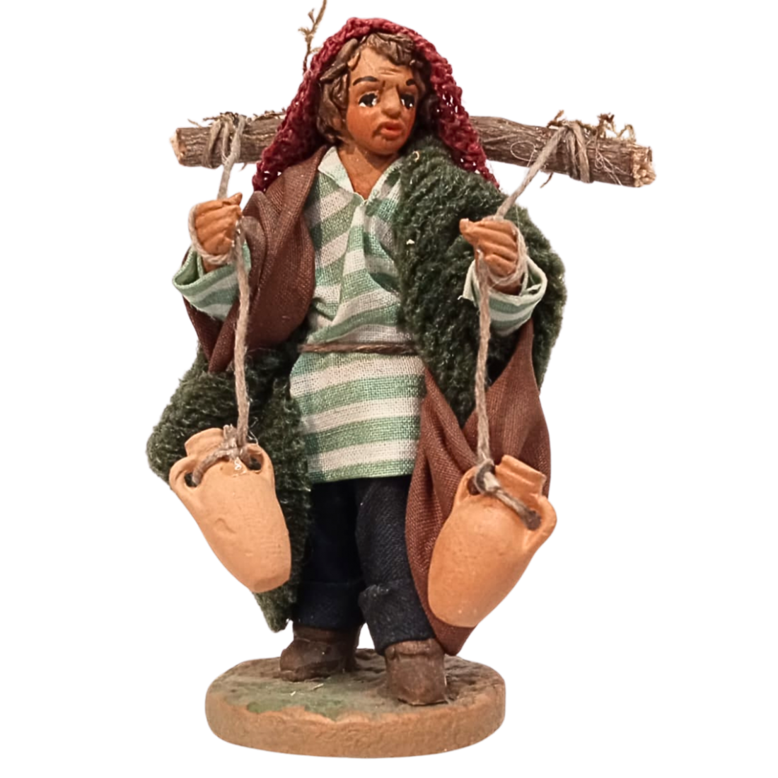 Acquaiolo con anfore cm 10 terracotta e tessuto